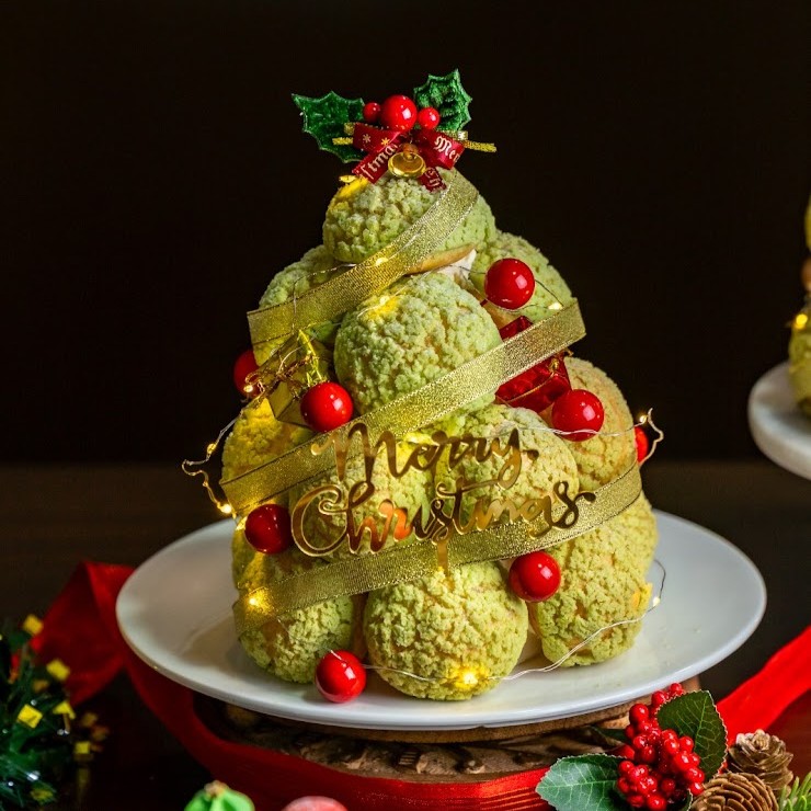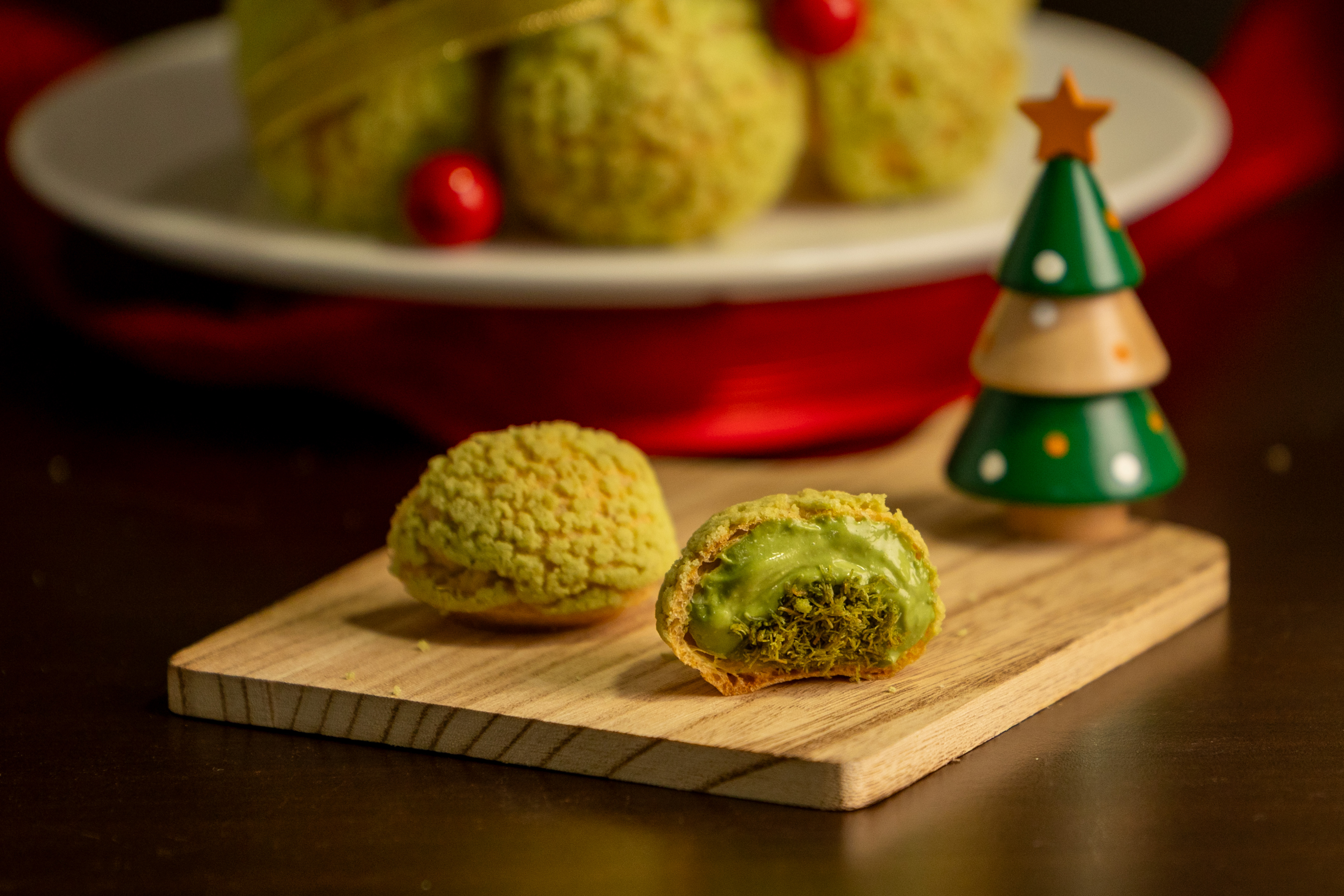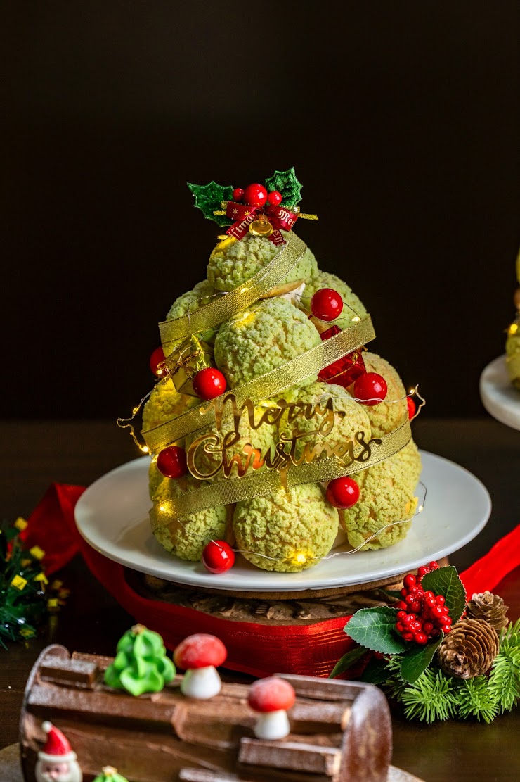 Experience the magic of the season with Home’s Favourite Kunafa Puff Tree, a luxurious twist on the classic Middle Eastern delight. Each golden puff is filled with smooth, nutty pistachio custard and beautifully layered over a rich chocolate sponge, creating a perfect balance of crunch, cream, and indulgence.